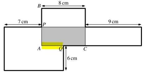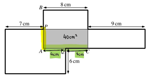Der Punkt P ist die Mitte von AB und der Punkt Q die Mitte von AC. Der schattierte Teil hat die Fläche 40 cm².