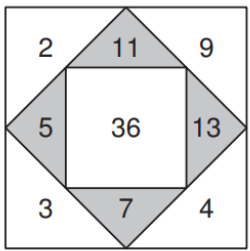 in der Mitte ist die Summe der vier Zahlen in den grauen Dreiecken.