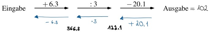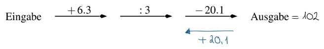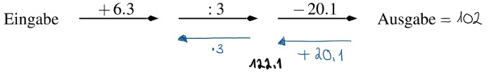 Beginne mit der Ausgabezahl und rechne rückwärts. Was ist dein erstes Zwischenresultat?