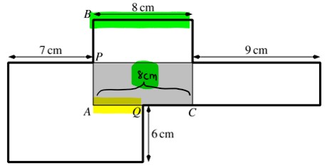 Die Länge des grauen Rechtecks beträgt 8 cm (grün).