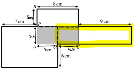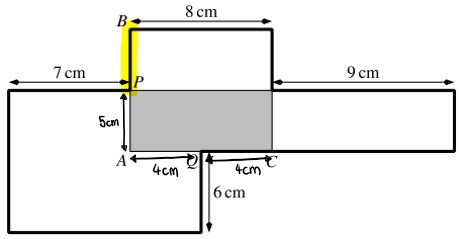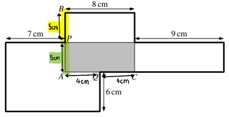 Die grün markierte Strecke beträgt 5 cm, das hast du im vorherigen Schritt berechnet. In der Aufgabenstellung steht, dass der Punkt P in der Mitte von AB liegt.