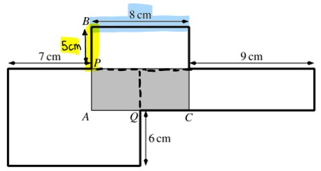 40cm² : 8cm = 5 cm