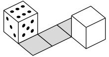 Der eingezeichnete Startwürfel wird immer durch Kippen über eine Würfelkante um 90° auf dem eingezeichneten Weg zum Zielwürfel bewegt.