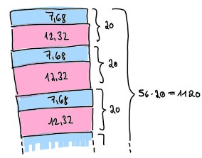 Der Grund dafür: 20 Mal eine 4.2 ist dasselbe wie 19 Mal 4.2 plus 4.2
