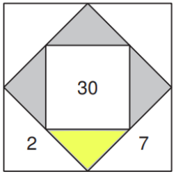 a) Ergänze die fehlenden fünf Zahlen im untenstehenden Rechenquadrat. Gib als Endresultat die Zahlen, die in den grauen Dreiecken enthalten sind an.