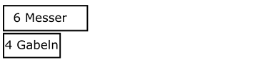 3. Der Wirt kauft eine Packung Messer dazu. Jetzt hat er wieder zu wenig Gabeln.