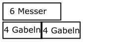 Erstelle eine Skizze, wo du Messer und Gabelnschachteln so lange nebeneinander aufreihst, bis du gleich viele Messer und Gabeln hast (mach zum Beispiel Gabelnschachteln 4 Häuschen und Messerschachteln 6 Häuschen lang).