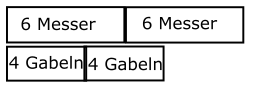 2. Der Wirt kauft eine Packung Gabeln dazu. Jetzt hat er zu wenig Messer.