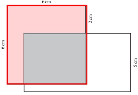 Wenn man den Flächeninhalt des grauen Rechtecks und des rosa farbenen Rechtecks addiert, erhält man 36 cm² (den Flächeninhalt des rot umrandeten Rechtecks).