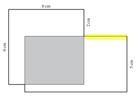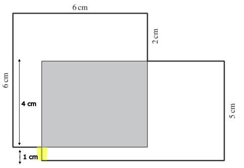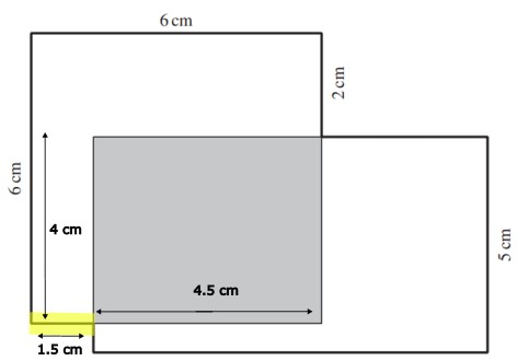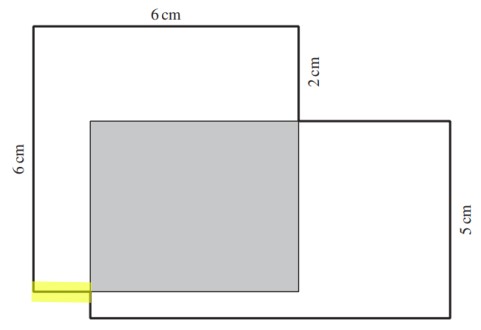 1 cm (gelb markierte Strecke) + 4 cm (Breite graues Rechteck) = 5 cm (Breite des grossen Rechtecks)