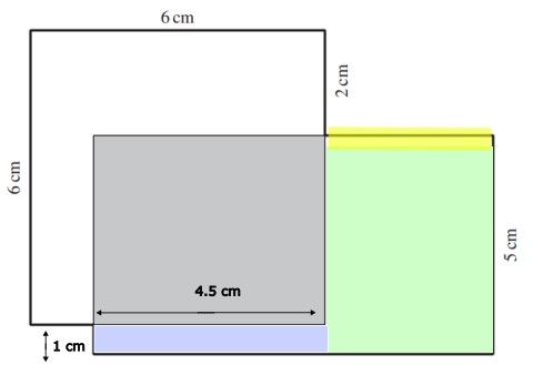 In der Abbildung überschneiden sich ein Quadrat und ein Rechteck in einem rechteckigen Gebiet (in der Abbildung grau),