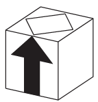 Die Symbole zeigen auf jeweils gegenüberliegenden Seiten in die gleiche Richtung. (So zeigen zum Beispiel auf Vorder- und Rückseite die Pfeilspitzen nach oben).